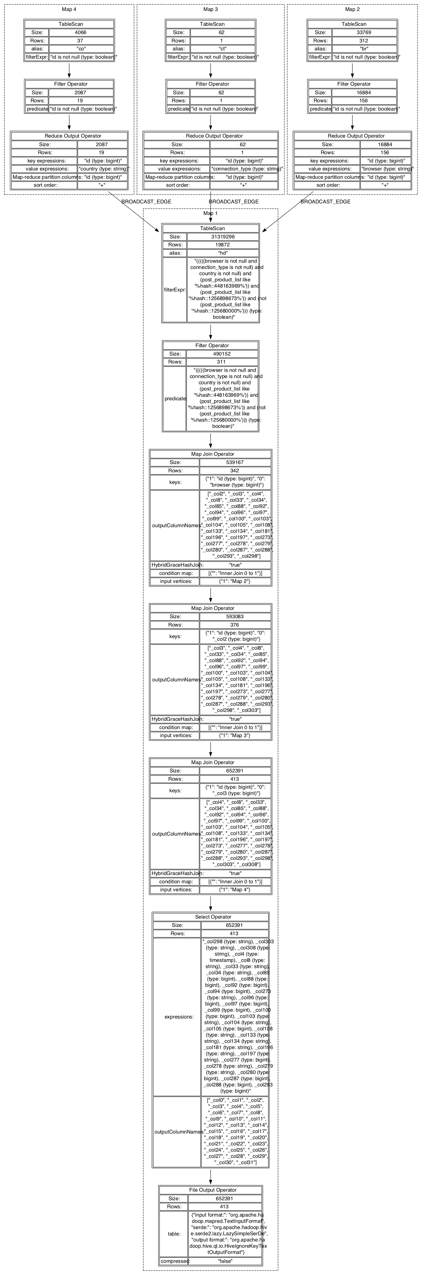 hd.browser=br.id and hd.connection_type=ct.id and hd.country=co.id
